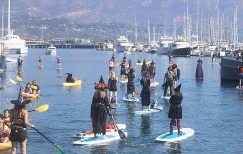 This was a fundraising event held in Santa Barbara Harbor to raise money for Foodbank. Participants dressed in black, wicked magic hats, and paddles instead of stereotypical brooms, swam around the harbor.